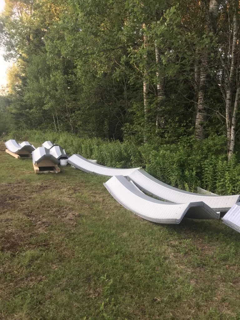 Our DuroSpan steel building kit was delivered this past week! We opted for a classic Quonset hut style building, which is constructed of a series of arches that bolt to one another. Pictured above are the pieces that make up the arches. I’m not going to lie, it’s a bit daunting to see multiple buckets of 600 bolts, knowing that my husband and I are the ones that have to put this whole thing together.