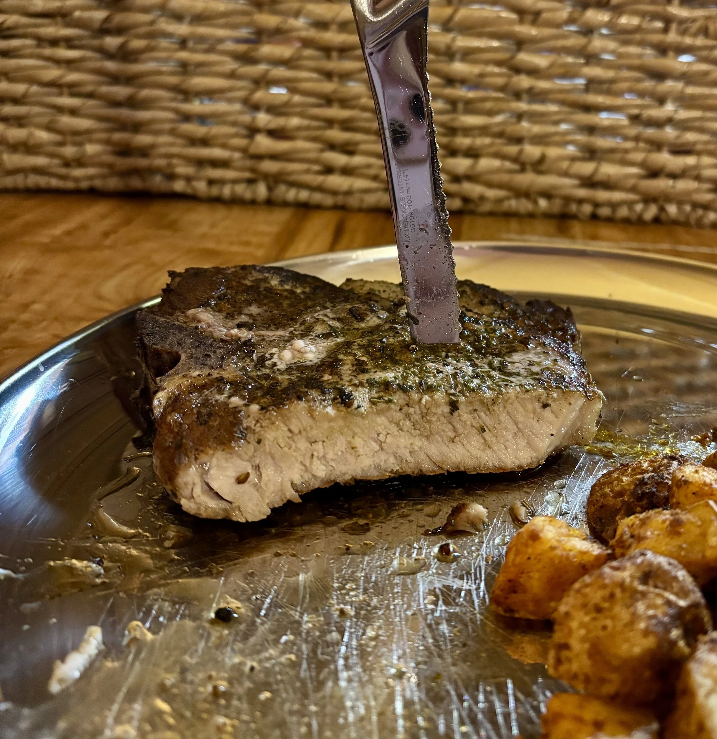That’s it: no marinades, no complicated sauces, no overthinking. Just well seasoned, pasture raised pork, a hot pan, and a quick finish in the oven. When the meat is this good to begin with, less really is more. Serve these with whatever vegetables are in season and let great ingredients speak for themselves!