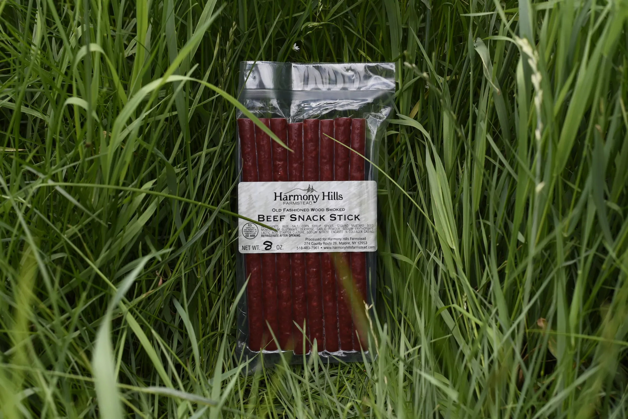 One 4 ounce pack of beef jerky from our neighbors at Harmony Hills Farmstead in Duane. Their cattle are registered Black Angus and are completely grass fed.
